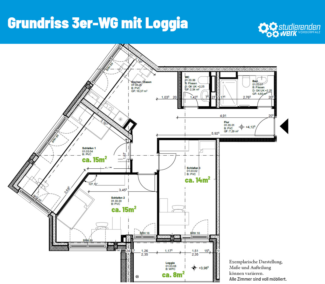 • Dreier-WG mit Loggia