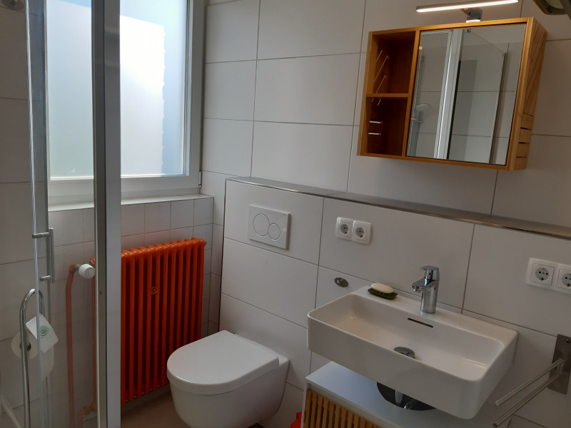 Küche (neu) mit: Kühlschrank, 2 Ceranfeld-Herdplatten, Spülmaschine, Mikrowelle (Heißluftfunktion), Waschmaschinenanschluss
